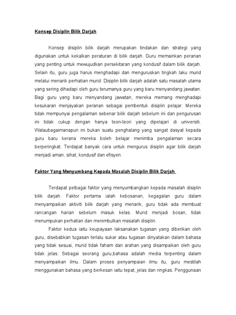. Peringkat pertama dalam sistem pengurusan disiplin di sekolah. 61 Konsep Pengurusan Masalah Disiplin Bilik Darjah. 10 konsep disiplin bilik darjah Peraturan-peraturan yang dikenakan kepada pelajar-pelajar dengan tujuan mengawal tingkah laku mereka melalui hukuman atau ganjaran.